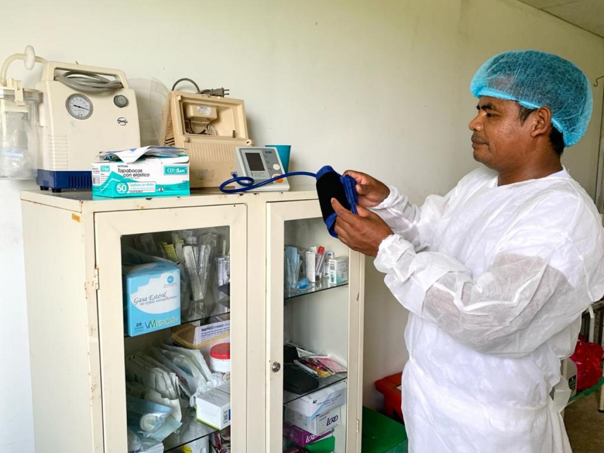 Después de 20 años de ofrecer sus servicios de auxiliar de enfermería en la espesa selva colombiana, Elkin Moreno, exintegrante de las Farc – Ep, está comprometido con la comunidad, aportando sus conocimientos en cuidados y atención primaria en salud, a más de 200 personas que habitan actualmente en esta zona del Catatumbo.