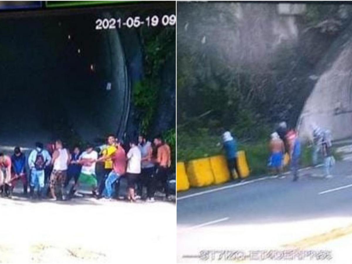 Con camisetas y trapos amarrados a sus rostros, un grupo de cerca de 40 hombres impidiendo ser identificados mientras vandalizaban ocho túneles ubicados sobre la ruta Cisneros - Buenaventura, a la altura del kilómetro 53.