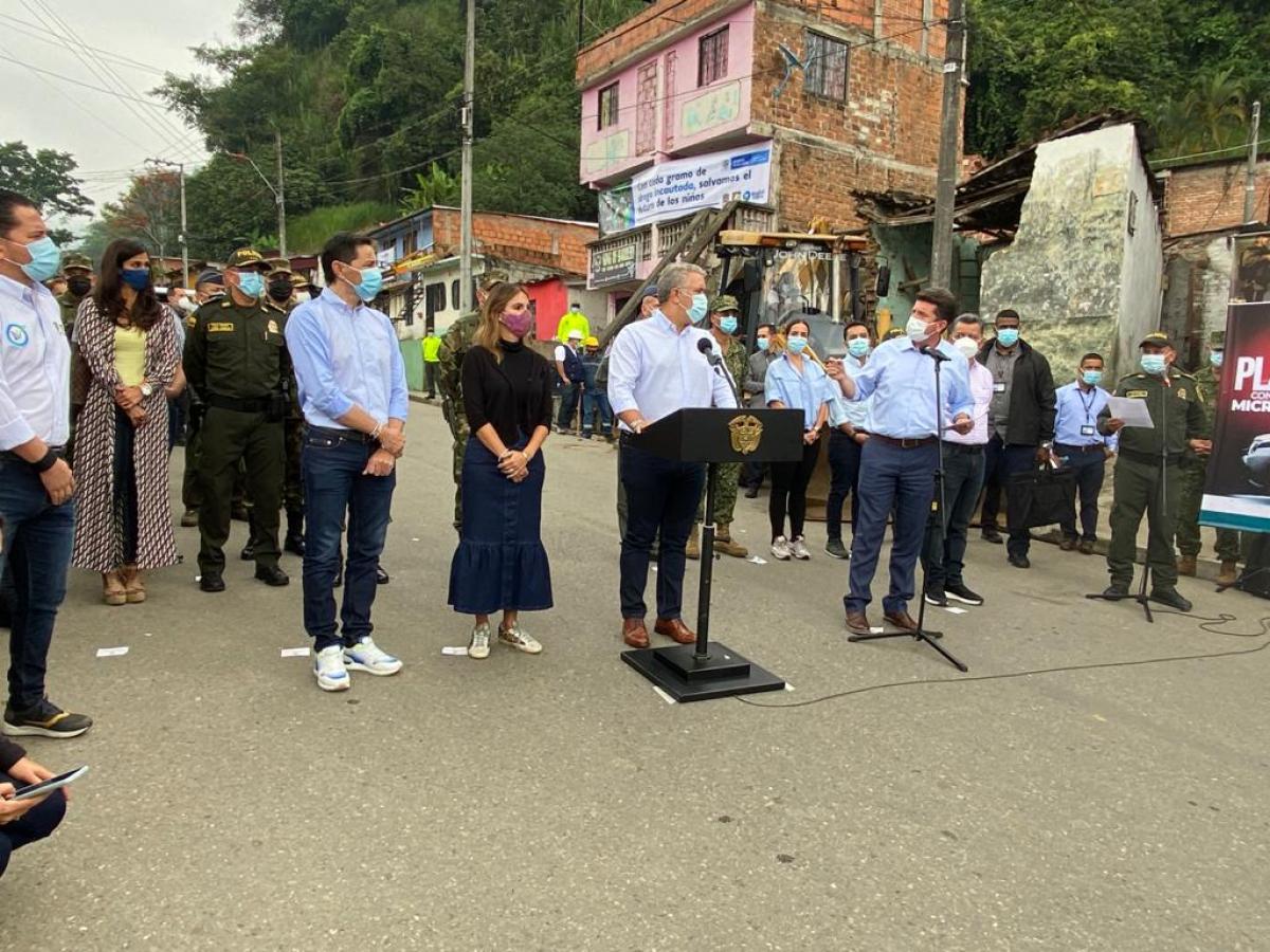“Seguimos avanzando en derrumbar ollas en sitios y barrios que generan crimen, que alimentan la violencia, que buscan incentivar a los jóvenes para que consuman y luego a delinquir”, dijo el ministro Molano.