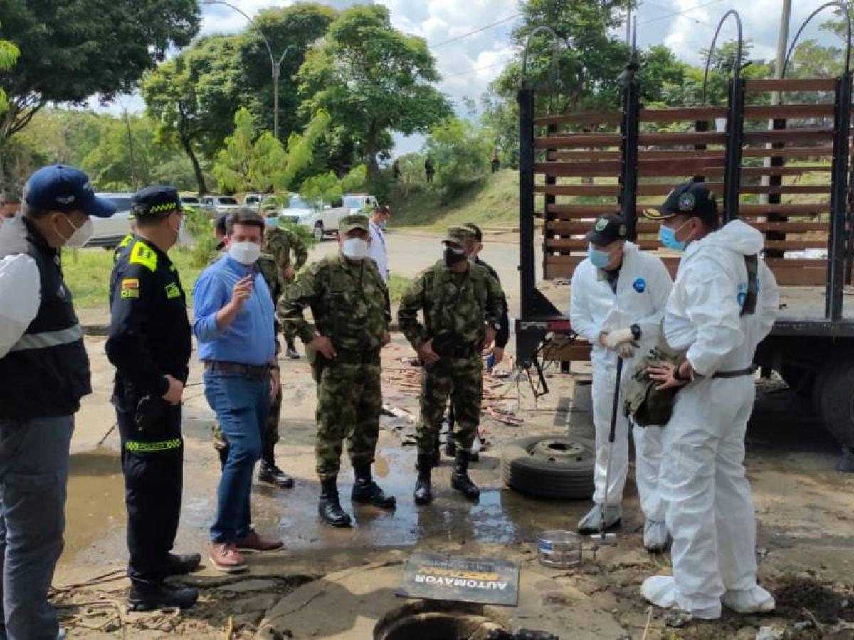 Por su parte, el ministro de Defensa, Diego Molano, entregó un balance del estado de salud en el que se encuentran los uniformados heridos. "13 policías heridos, un civil. Estuvimos visitándolos. Hasta el momento hay dos con afectaciones graves, uno que también está en proceso de revisión, los otros están en recuperación pero no hubo ninguno con afectación a su vida”, dijo.