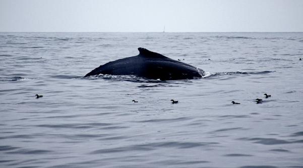 Sus aguas atraen a miles de aves, que repentinamente echan a volar cuando unas enormes ballenas -hasta de 14 especies- salen a la superficie desde las profundidades del Pacífico para respirar.