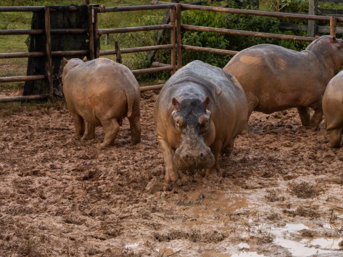 “Para la aplicación del medicamento en los hipopótamos se implementaron dos estrategias. Por un lado, la aplicación del medicamento a través de dardos a los individuos cebados y capturados todos los días en un corral especialmente diseñado; y por el otro, de manera directa en los lagos, usando rifles de dardos. Se espera que este método se convierta en parte de la solución para esta problemática”, explicó Gina Paola Serna, médica veterinaria de Cornare.