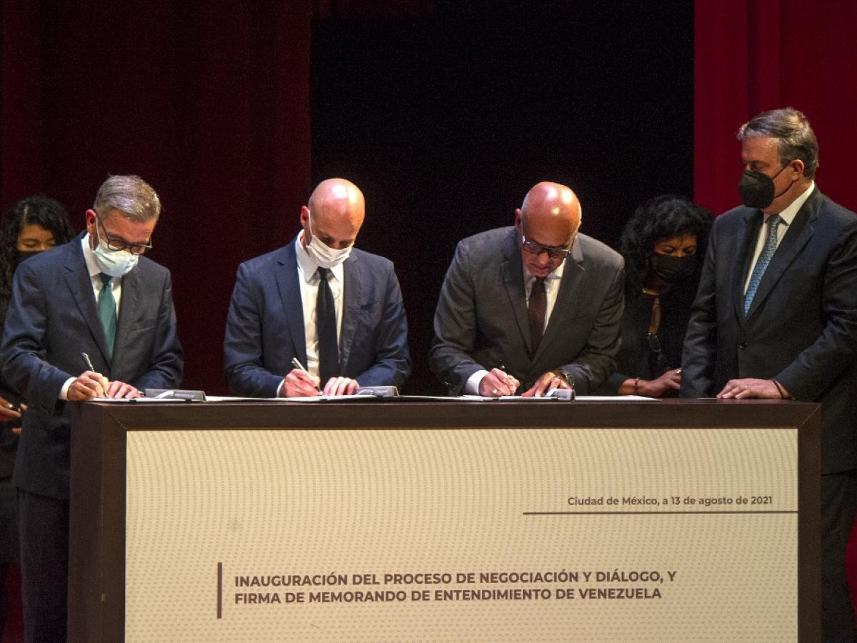 Tras los fallidos diálogos de Barbados en 2019, y República Dominicana en 2018, las partes firmaron un memorando de entendimiento para sentar las bases del proceso que se desarrollará en México con la facilitación de Noruega. Países Bajos y Rusia serán acompañantes.