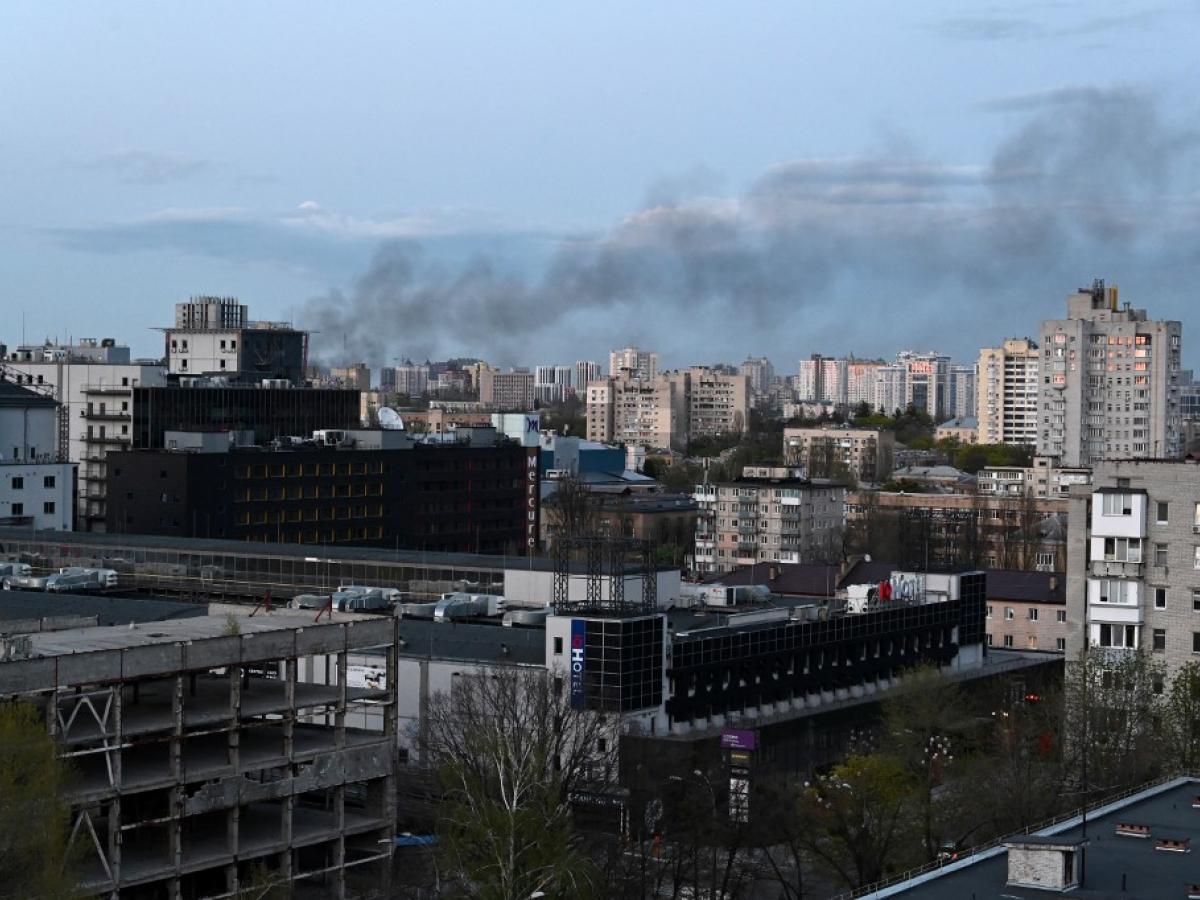Los reporteros de la AFP vieron un edificio en llamas en el área bombardeada, en los primeros ataques rusos contra Kiev desde mediados de abril.