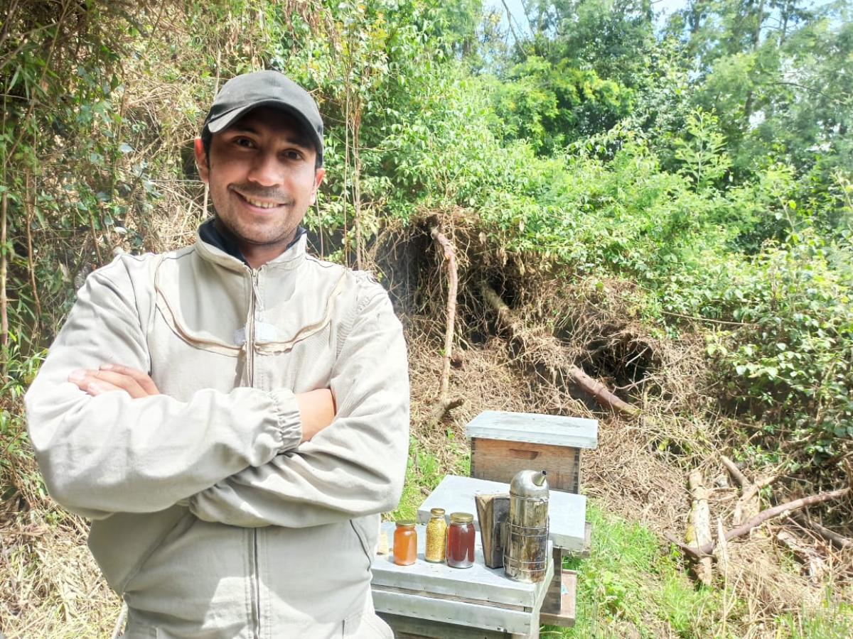 Andrés es apicultor de oficio y zootecnista de profesión, desde su iniciativa han trabajado por la comercialización de productos de las colmenas, por otra parte, ha desarrollado trabajos de investigación con abejas nativas. “Es importante recalcar que los impactos de la apicultura son positivos en el medio ambiente, los ecosistemas y especialmente en el sector rural”, destaca.