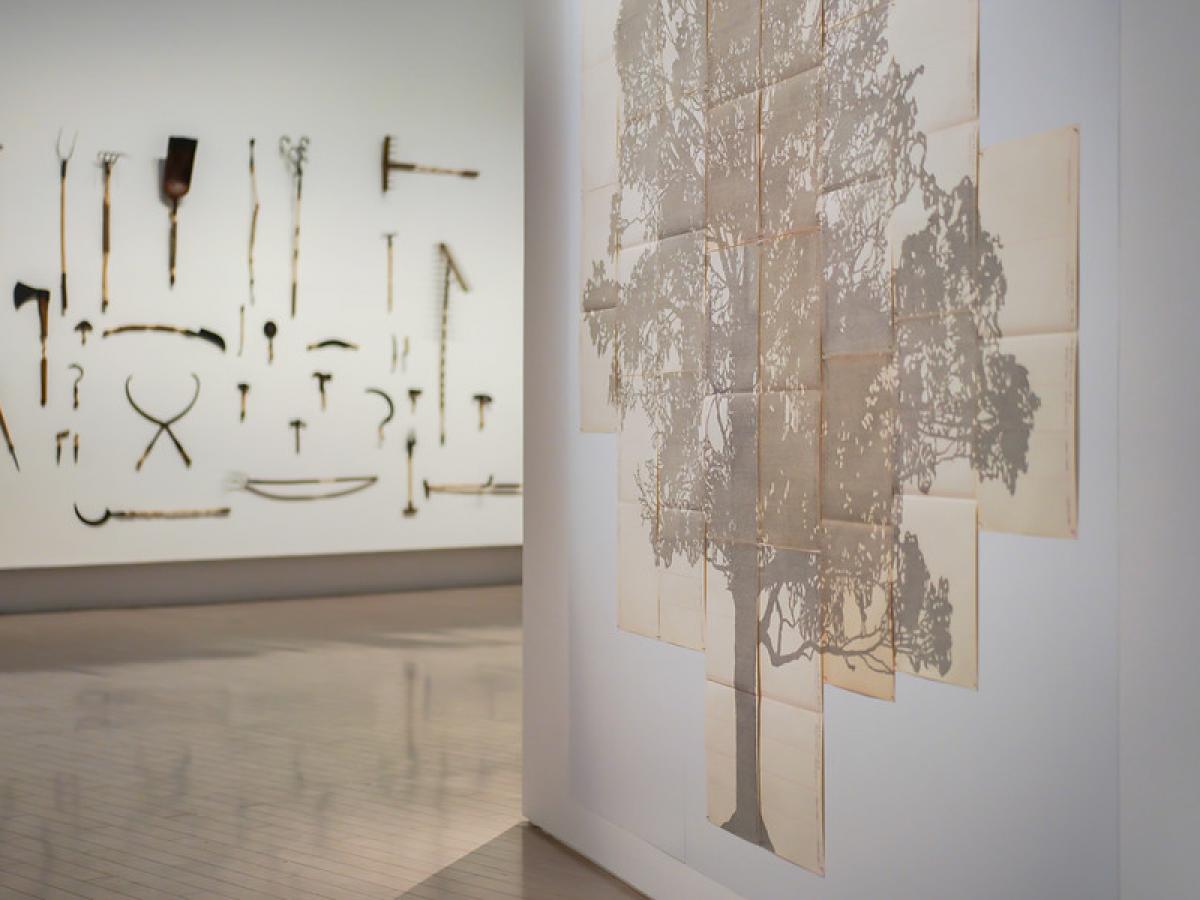 Johanna Calle exhibe en China obras que hicieron parte de la exposición francesa 'Nous les arbres' - 'Perímetros (Sangregado)' y 'Perímetros (Ceiba)' de 2014, además de 'Perímetros (Nogal andino)' de 2012 -, pues los curadores de Shanghai decidieron presentarlas en gran formato junto a la inédita 'Perímetros (El Nus)' (2019-2021).