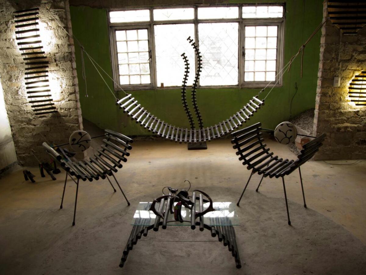 También está el ‘Salón del tiempo’, compuesto por piezas que unen tres conceptos: el arte, la artesanía y el diseño. Hay otras obras, en cambio, sobre la cultura indígena. Se trata de los Nukak Maku, “que trabajan el guarumá y el cumare, he tomado estos dos elementos y con ellos he fabricado estas piezas que reúnen los tres conceptos".