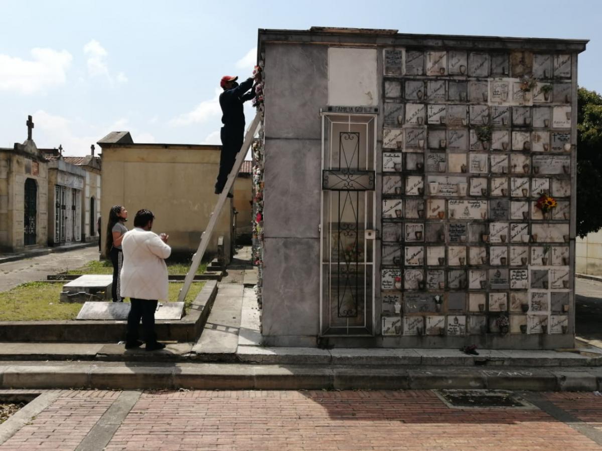 “Entre los homenajes podemos destacar llevar flores, serenatas, velas, limpiar la lápida e inclusive lanzar monedas, como ocurre en el Cementerio Central de Bogotá. Estas prácticas tienen la finalidad de restablecer el vínculo con los muertos y reafirmar los afectos”, explica Eloisa Lamilla, antropóloga del grupo de investigación del IDPC.
