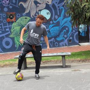 Santi Tinta es un MC, (artista que se dedica a improvisar y crear letras de rap) conocido en diferentes localidades de Bogotá, comprometido como él dice “Las 24.7 horas al hip hop”.