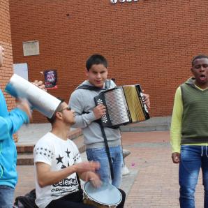 “Los invito a que parchen con nosotros un rato, vamos a tener uno de los grandes musicales de este año” así lo anuncia en el Parque de Lourdes, de la localidad de Chapinero, una de las integrantes del grupo musical Sin Filtro: Kristel Erazo.