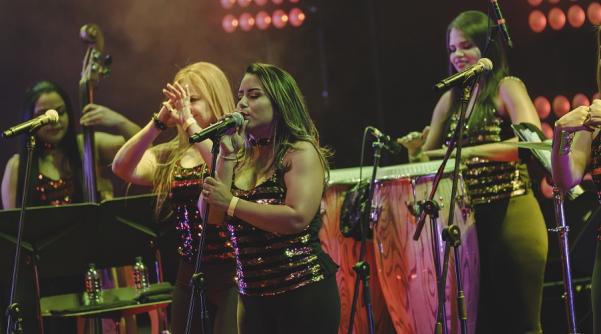 Una de las orquestas femeninas más importantes del país, ´Orquesta Canela´, conformada en su totalidad por mujeres, contagió con su baile y su propuesta fresca al compás de la salsa en la Noche Radio Nacional. Las familias colombianas disfrutaron del evento al ritmo de grandes éxitos que han sonado en diferentes escenarios del mundo como el ´Mujeriego´ y ´Embrujo de amor´.