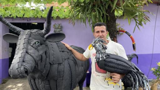 Orlando Pérez, el constructor de animales con llantas usadas en Piedecuesta