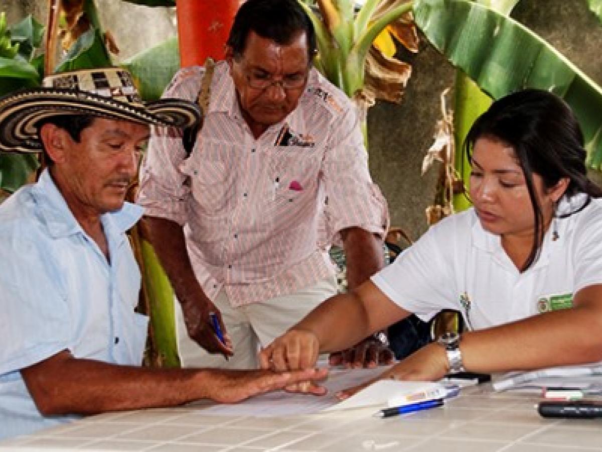 Pueblo. Dos personas buscan ayuda por medio del personero para solucionar con su vecina la delimitación legal de sus terrenos.